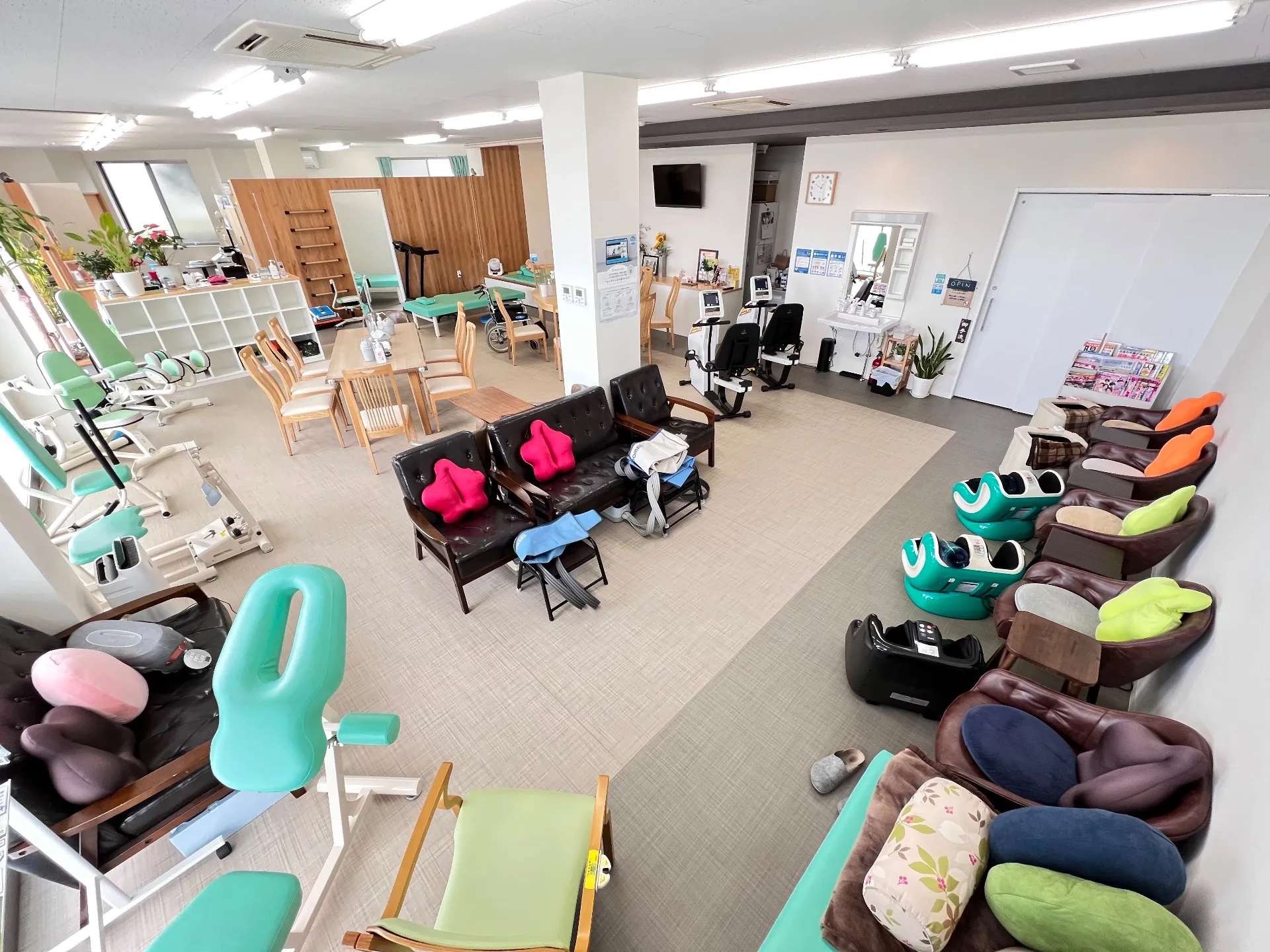 利用者様が快適な生活を送れるリハビリ施設としてアットホームでリラックスできる空間作りに努めてまいりました。施設のご紹介として様々な場面をギャラリーにてご紹介いたします。日差しが差し込む明るく清潔な空間で、気持ちよくトレーニングにお励みください。