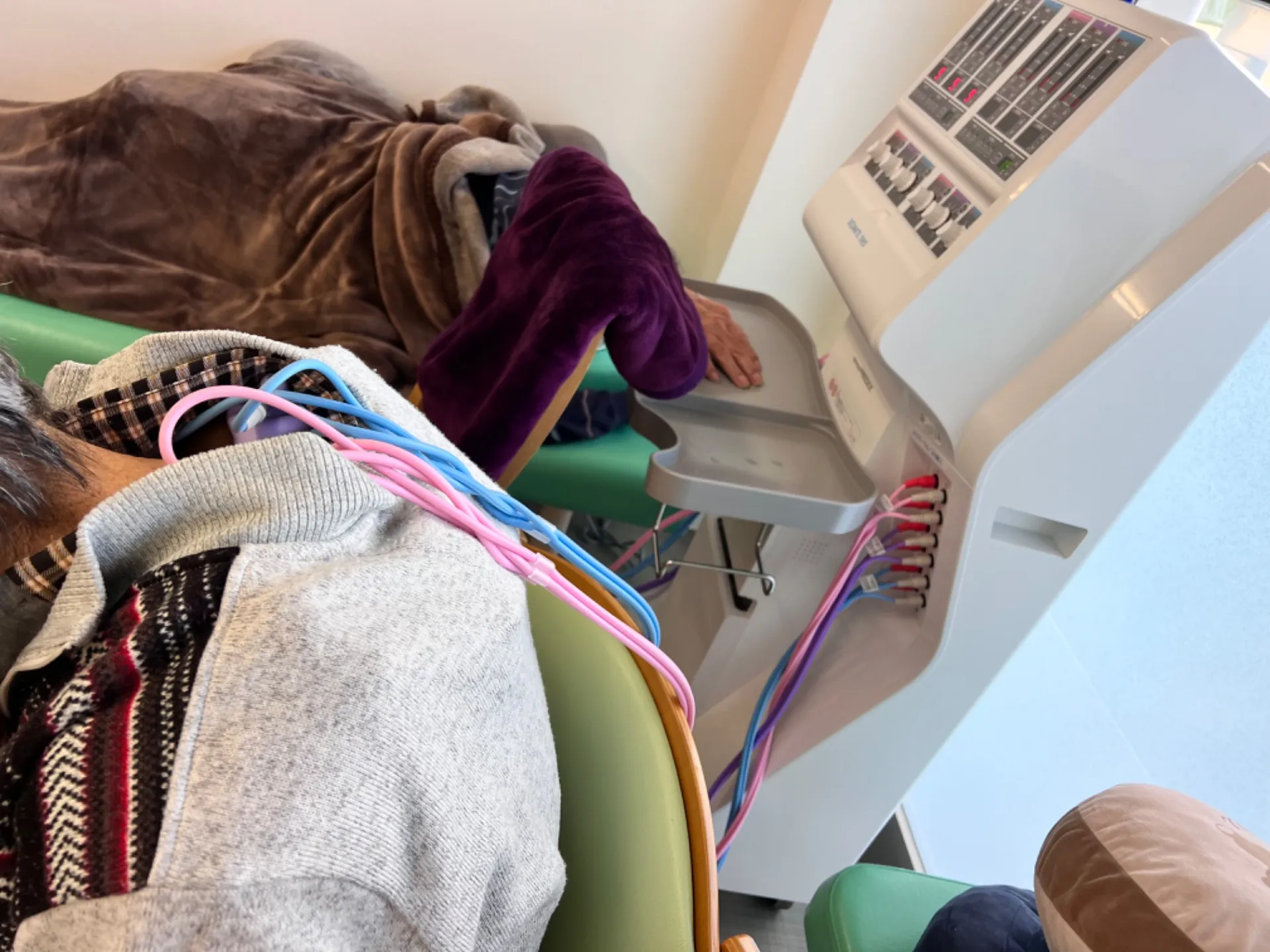 干渉波治療器は、筋を収縮させ、筋に刺激を加えることにより、患部の硬くなった筋の緊張を和らげます。その結果、血流が良くなり、痛みや疲労を出している物質を血流で流すことで、鎮痛効果が期待されます。